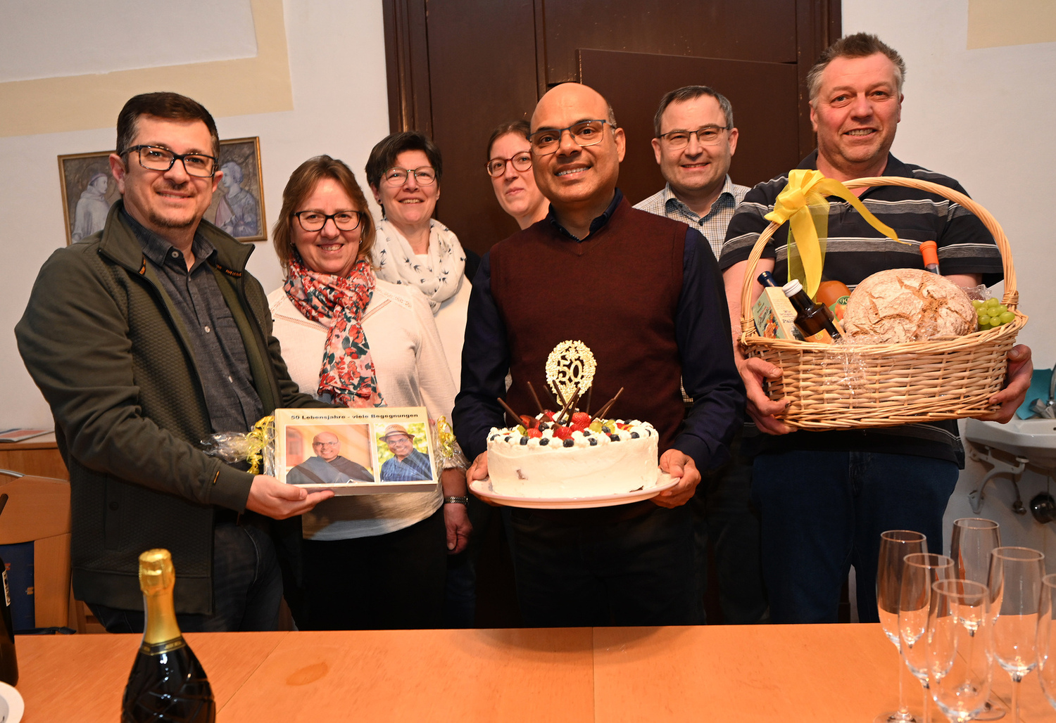 Pater Nicholas feiert am 4. April 2024 seinen 50. Geburtstag. Aus diesem Grund überraschten ihn Vertreter aller Pfarren des Pfarrverbandes und gratulierten recht herzlich zum Jubiläum.