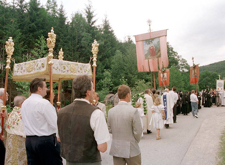 Wir zeigen ihnen so Jesus. In vielen Pfarren haben die Erstkommunionkinder dabei einen besonderen Platz. Vor kurzem haben sie zum ersten Mal Jesus selbst im Brot empfangen dürfen, nun sind sie eingeladen sich öffentlich zu Jesus zu bekennen und ihn durch die Straßen der Pfarre zu begleiten, so dass alle es sehen.