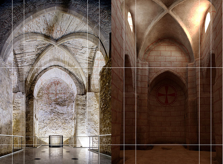 Um 1246 stattete man die unterirdische Kapelle mit Fugenmalereien und Radkreuzen in den Nischen aus. „Es muss schon ordentlich imposant gewesen sein: zwölf Meter hoch, ausgestattet mit diesen Malereien und in jeder dieser Nische ein Radkreuz. Ich glaube, dass es ein bedeutender Raum war, der sakral genutzt worden ist“, sagt Michaela Kronberger.