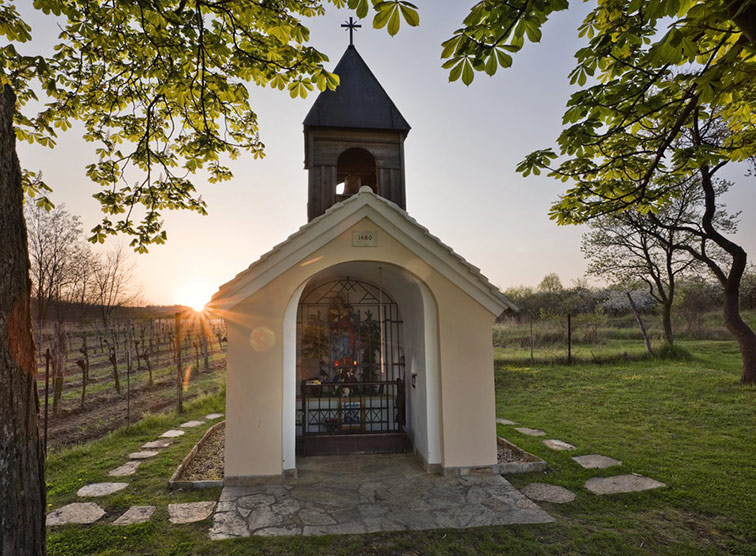 Verinnerlichte Hektik und mühsamer Alltagsstress lassen sich an diesem Kraftort wunderbar abstreifen. Weingärten und Rebstöcke kennzeichnen die sanft-hügelige Landschaft ringsum. Von der Bergkuppe reicht der Blick ins Retzerland und nach Südmähren. Die reine Luft kann man beim Radfahren tanken – was viele auf dem Weg hierher tun.