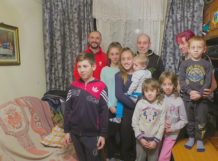 Nun wohnen Familien der nächsten Generation hier. Die Väter können kaum oder nur wenig Einkommen erarbeiten, wie bei Familie Otvos. Iosif und Raluca leben hier mit ihren sieben Kindern im Alter von zwei bis 14 Jahren. Eine kleine Küche, ein Wohnzimmer, ein Schlafzimmer, mehr als 50 Quadratmeter Fläche gibt es für die neun Personen nicht.