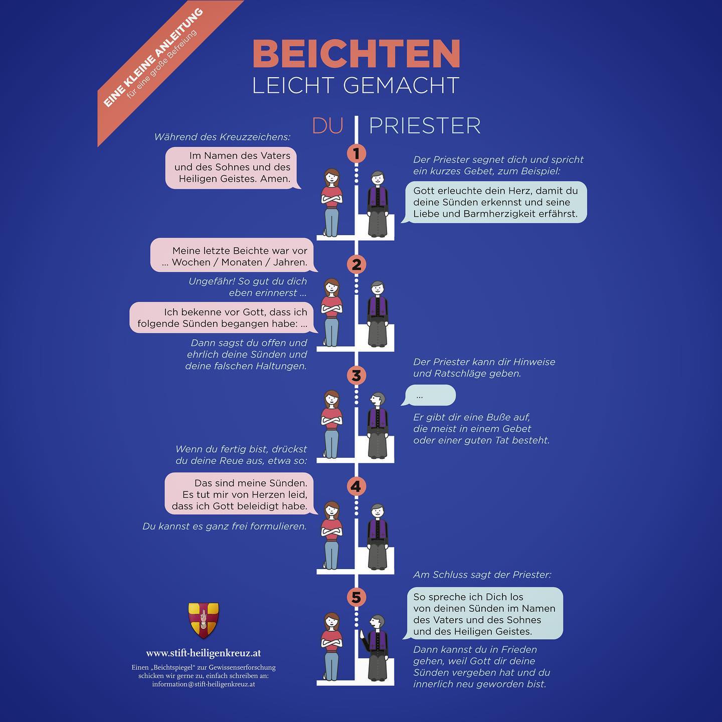 Beichten ist unangenehm. Für jeden. Aber es ist gut für Sie! Erstens müssen Sie über Ihre Fehler nachdenken und sie sogar aussprechen. Wann würden Sie das sonst machen?! Es ist ein Teil der 'Therapie', wenn Sie das Falsche aus sich raussprechen. Und zweitens bekommen Sie dann direkt etwas von Gott geschenkt: eine wirkliche Vergebung!