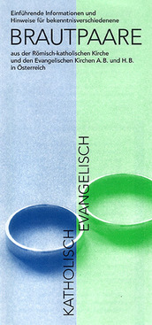 Faltblatt mit Informationen und Hinweisen für konfessionsverschiedene Brautpaare aus der röm.-kath. Kirche und den evangelischen Kirchen A.B. und H.B. in Österreich.