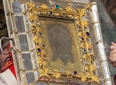 Das Schweißtuch der Veronika mit dem geheimnisviollen Abdruck des Antlitzes Christi steht im Mittelpunkt der abendlichen Vesper- Liturgie zum 5. Fastensonntag im Petersdom.