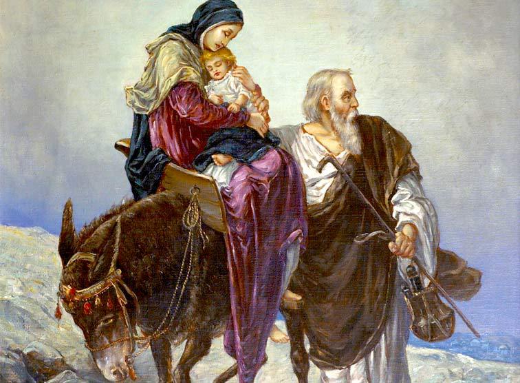 Gottes Führung allein rettet das Kind und seine Mutter Maria. Josef, der Gerechte, wirkt dabei still und gehorsam mit.