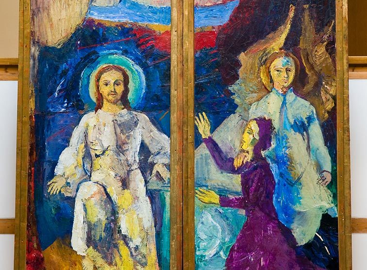 Da sah sie zwei Engel in weißen Gewändern sitzen, den einen dort, wo der Kopf, den anderen dort, wo die Füße des Leichnams Jesu gelegen hatten.