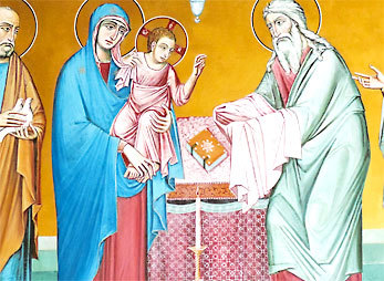 Vierzig Tage nach der Geburt hatte nach jüdischem Gesetz die Mutter im Tempel in Jerusalem ein Opfer für ihre "Reinigung" darzubringen. Doch nennt das Evangelium noch einen zweiten Grund: Jeder Erstgeborene gehört nach alttestamentlichem Verständnis Gott als Eigentum. Durch ein Opfer wird er symbolisch "losgekauft".
