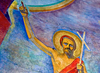 Heute ist aber von einem anderen die Rede, der dasselbe auf dem Herzen hat. Johannes, der Täufer, der Verwandte Jesu, sein „Vorläufer“. Er hat den Menschen nur diese eine Botschaft zu sagen: Der Herr ist nahe. Sein Beruf ist es, „Wegweiser“ zu sein. So stellt ihn die Kunst oft dar: ein hagerer Asket, dessen Zeigefinger auf Jesus hinweist. „Seht, das Lamm Gottes“, hatte er zu seinen Schülern gesagt, als sie einmal Jesus vorbeigehen sahen.