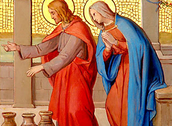 Die Hochzeit, zu der Maria, die Mutter Jesu, eingeladen war, fand nahe von Nazareth statt, in dem Dorf Kana, das es heute noch gibt. Unter den zahlreichen Hochzeitsgästen waren auch Jesus und seine ersten Jünger. Maria bemerkt als erste die peinliche Situation, den Gastgebern ist der Wein ausgegangen. Eine Schande vor allen Gästen. Sie macht diskret ihren Sohn darauf aufmerksam. Was will sie damit? Was soll er denn machen? Wein „herzaubern“? Erwartet sie von ihm ein Wunder? Oder will sie mit ihm nur die Sorge teilen, weil ihr die Gastgeber leid tun?
