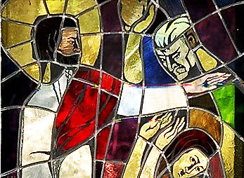 Als sie hartnäckig weiterfragten, richtete er sich auf und sagte zu ihnen: Wer von euch ohne Sünde ist, werfe als Erster einen Stein auf sie. Und er bückte sich wieder und schrieb auf die Erde.
