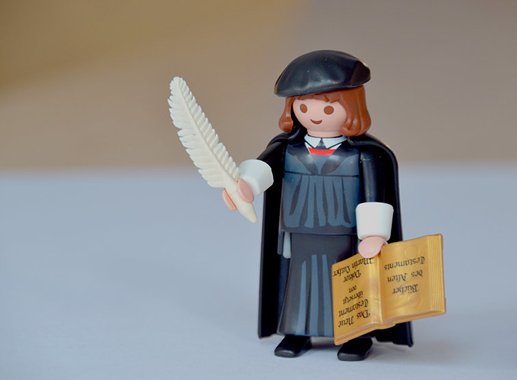 An Luther kann man lernen, beschäftige dich täglich mit der Heiligen Schrift! Damit das jeder und jede kann, hat er die Bibel übersetzt. Die Lutherbibel wurde zum Jubiläum „500 Jahre Reformation“ neu überarbeitet. Sie ist übrigens auch ein Verkaufsschlager, und vielleicht wichtiger als die Playmobilfigur!