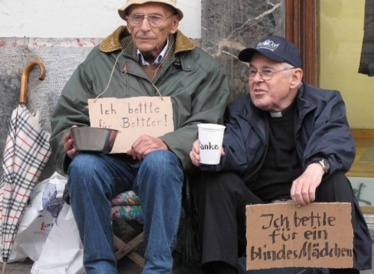 Der Grazer Armenpfarrer Wolfgang Pucher bei einer Aktion gegen Bettelverbote.