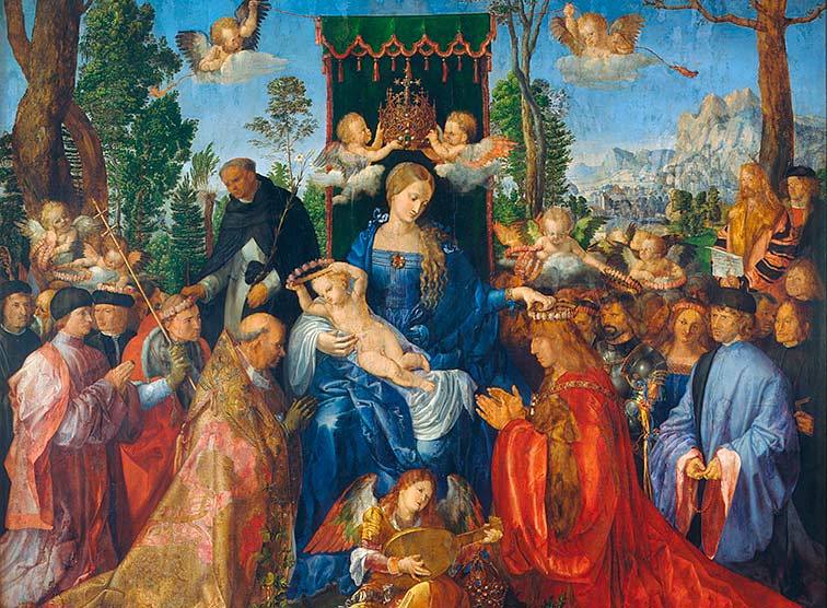 Das Rosenkranzfest, auch Rosenkranzaltar genannt, ist eines der wenigen Altarbilder Albrecht Dürers: