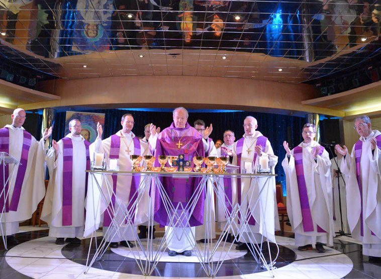 Sindelar: Für mich persönlich ist dieser Reisaltar ein Statement für Mobilität, für das Hinausgehen, für Kirche. Im Vorfeld der Diözesanwallfahrt haben wir uns die "MSC Armonia" sehr genau angesehen. Da es ein Kreuzfahrtsschiff ist, ist hier alles ziemlich perfekt. Natürlich kann man, wenn man auf Reisen ist, im Einzelfall auch einen Tisch für die Eucharistiefeier verwenden. Uns war von der Wertigkeit wichtig - da die Eucharistie die Quelle und der Höhepunkt unseres Leben ist - auch im Zusammenhang mit der Wallfahrt, das wir mit dem Altar eine Mitte schaffen, die ein wenig diesem Anspruch gerecht wird. Das heißt nicht, dass das teuer sein muss.