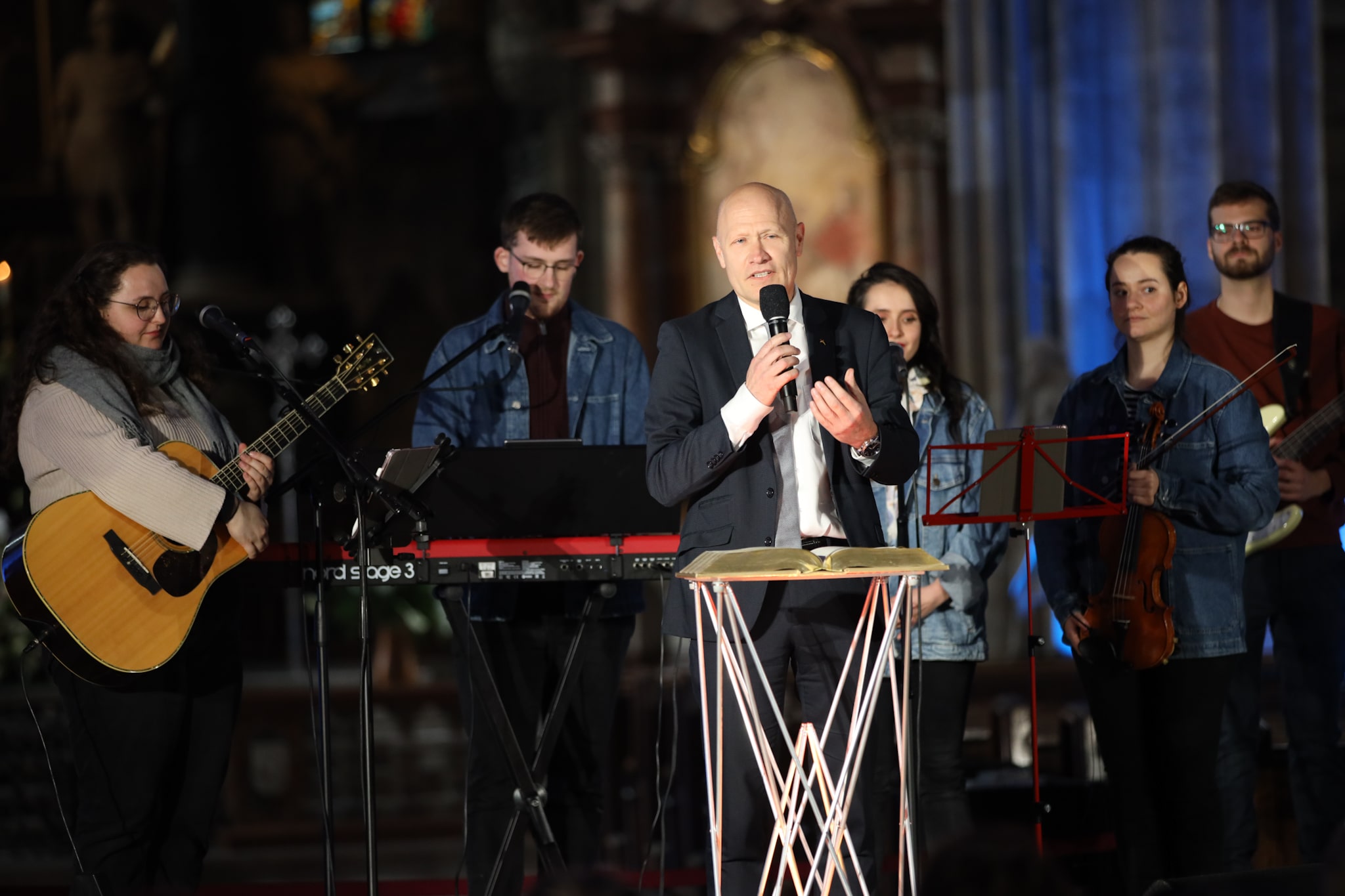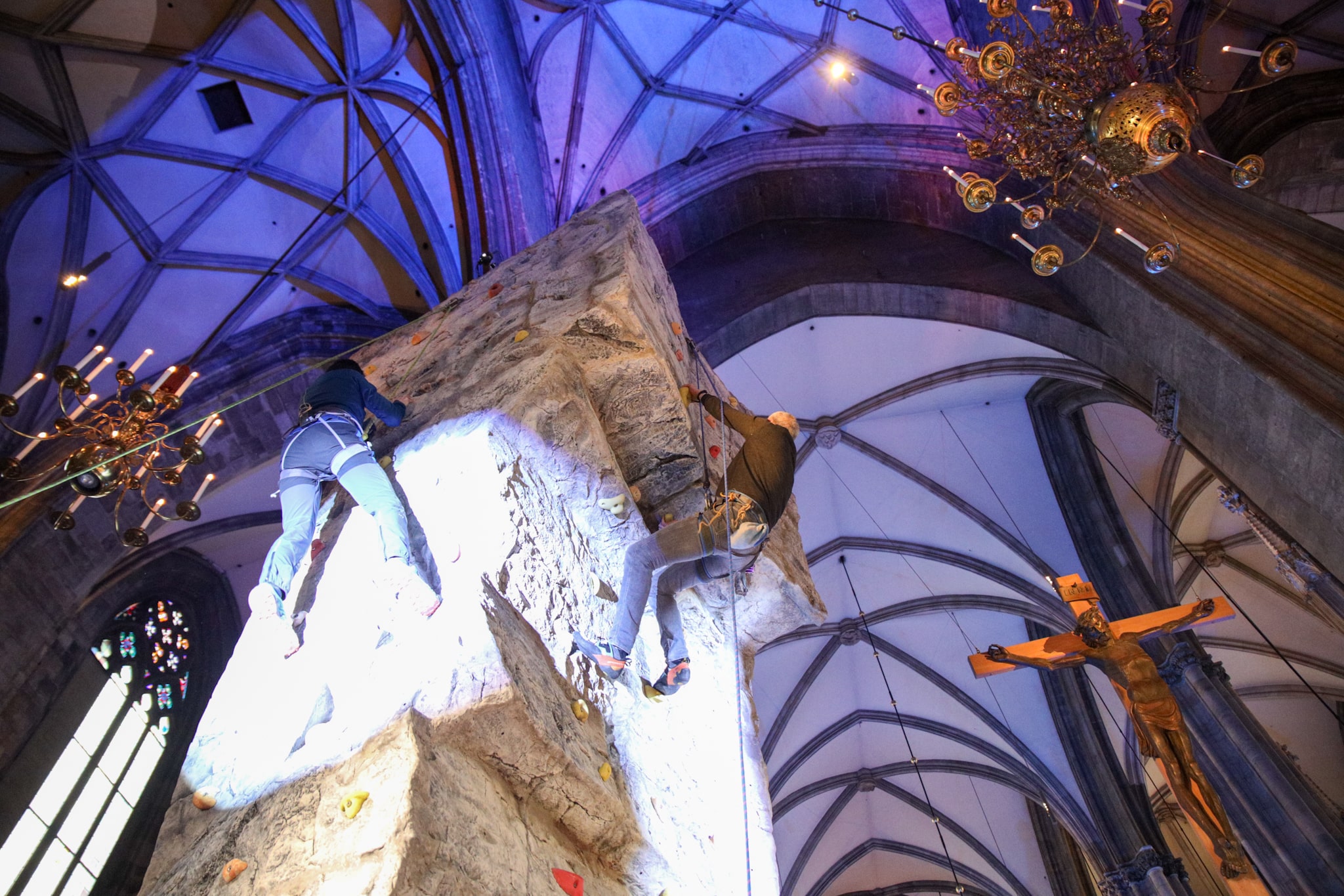 Der stimmungsvolle Gottesdienst wurde von einer Worship-Band begleitet, als Abschluss wurden die Schülerinnen und Schüler von Vertreterinnen und Vertretern der katholischen und evangelischen Kirche gesegnet. Anschließend konnten die Besucherinnen und Besucher die Kletterwand selbst besteigen und sich individuell segnen lassen. Auf dem Stephansplatz wartete eine Chillout-Zone mit Musik von kronehit-Moderator Fredi Hahn sowie Snacks und Getränken.