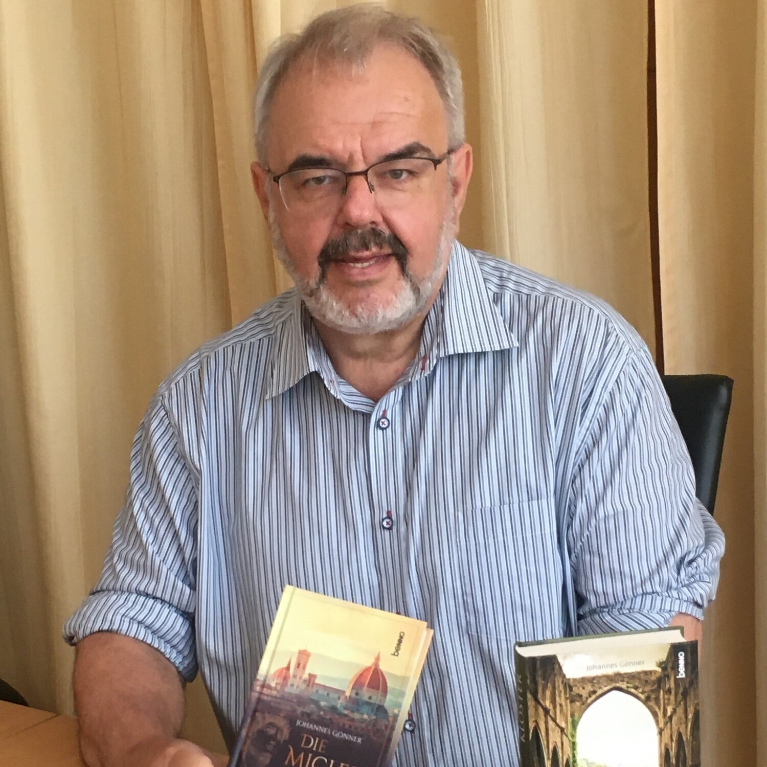 „Meine Geschichten sind mehr oder weniger ‚Krimis‘, stets handelt es sich um mysteriöse Geschichten, in denen Dinge geschehen, die einfach nicht geschehen können,“ erläutert Johannes Gönner. Die Geschichten spielen stets im Umfeld der Canisius-Gemeinde. Manchmal auch auf Kreta.