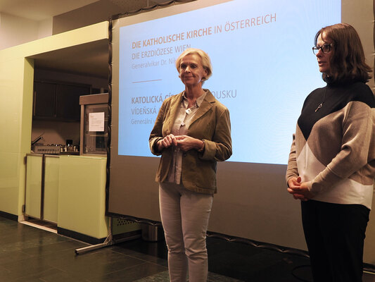 Direktorin Mirjam Schmidt stellte anschließend das Diözesankonservatorium für Kirchenmusik vor. Und Katja Eckert schließlich vom Katholischen Bildungswerk Wien präsentierte vor den Gästen aus Brünn den breiten Bereich der Erwachsenenbildung.