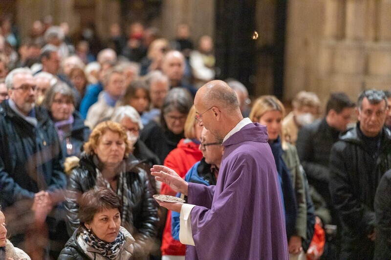 Dompfarrer Toni Faber spendet das Aschenkreuz.