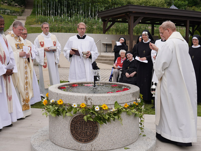 Nach dem Gottesdienst versammelten sich alle im Klostergarten zur Segnung des neuen Benediktus-Brunnens. Der Brunnen, der zu Ehren des heiligen Benedikt von Nursia errichtet wurde, ist ein Symbol für die Lebensquelle des Glaubens.