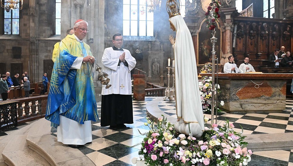Abgeschlossen wurde die Feier mit der traditionellen Prozession mit der Fatimastatue im Dom. Die Statue wurde von Gardesoldaten getragen. Musikalisch gestaltet wurde der Gottesdienst von "Ars Musica" und dem Chor von St. Augustin unter der Leitung von Thomas Dolezal und Peter Tiefengraber. Musikalisch stand heuer auch der 200. Geburtstags von Anton Bruckner im Mittelpunkt.