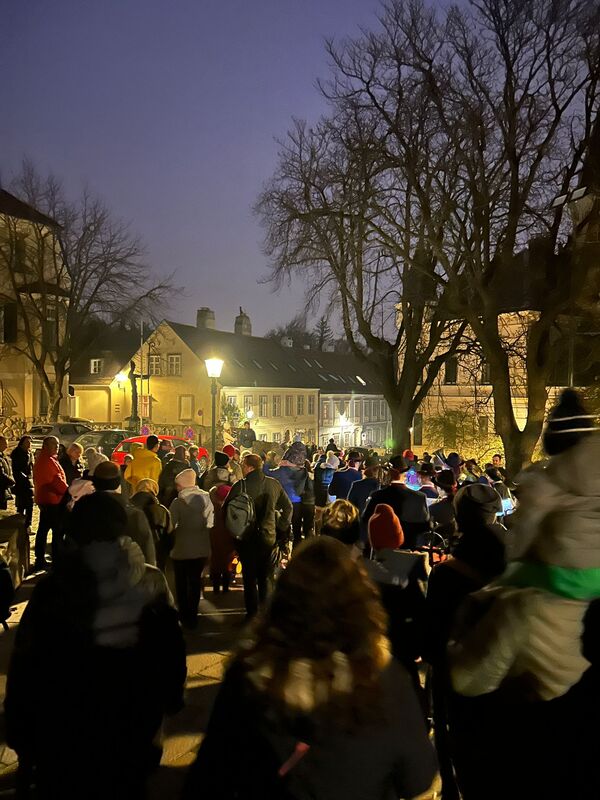 Anschließend fand eine von der Blasmusik begleitete Prozession durch die Fußgängerzone in Mödling zur Spitalkirche statt, wo bei einem Martinsfeuer noch das Vater unser gesungen und die von der Bäckerei Kolm bestellten 1.000 Kipferl verteilt wurden.