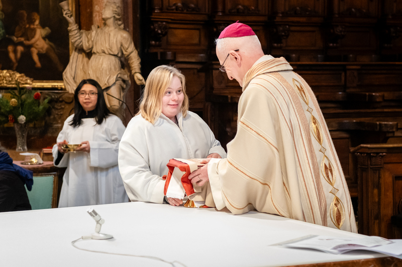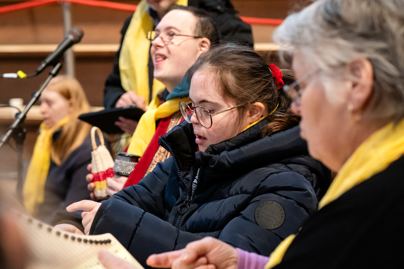 Menschen mit Behinderung gestalteten die Messe, sprachen die Fürbitten, spielten Pantomime und musizierten. So war u.a. das Harfen Ensemble "Saitensalat" zu hören, in dem Menschen mit Down-Syndrom spielen. Ein Mitglied der Glaubens- und Musikgruppe "Faith4U&Me", in der sich Menschen mit und ohne Behinderung engagieren, hat ministriert, andere haben sich im Chor engagiert.