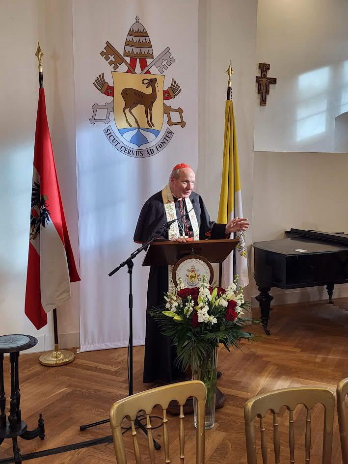 In seiner Dankansprache nahm Schönborn Bezug auf das Motto des ITI, "Sicut cervus at fontes" (Wie der Hirsch lechzt nach frischem Wasser, so lechzt meine Seele, Gott nach Dir"; Psalm 42). In unserer Zeit gebe es so viele Seelen, denen der Bezug zum christlichen Glauben fehle, die sich aber nach diesem lebendigen Wasser sehnten. Das ITI trage dazu bei, gerade die Quellen dieses lebendigen Wassers zu studieren und zu vermitteln, sagte der Kardinal, der seit seiner Emeritierung auch nicht mehr Großkanzler ist.