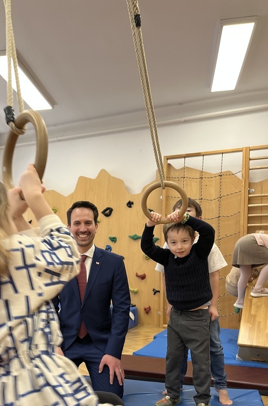 Als seine erste Amtshandlung unmittelbar nach der Angelobung hat der neue Bildungsminister Christoph Wiederkehr (NEOS) am Montag einen kirchlichen Kindergarten in der Wiener Innenstadt besucht. Es sei dies ein "klares Zeichen für die frühkindliche Bildung", das die hohe Wertschätzung für diesen essenziellen Bildungsbereich unterstreiche und deutlich mache, "dass die Stärkung der Elementarpädagogik eine zentrale Rolle im neuen Regierungsprogramm spielt", hieß es in einer anschließenden Aussendung der St. Nikolausstiftung als Trägerin der Einrichtung am Judenplatz.