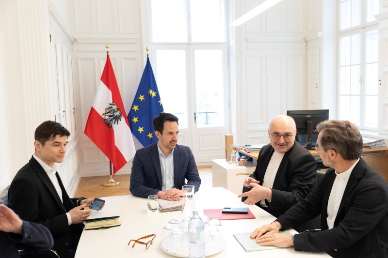 „Wir hatten ein sehr gutes Gespräch und ein erstes Treffen wie ich als Bildungsminister und das Bildungsministerium mit der katholischen Kirche in Bildungsfragen zusammenarbeiten können. Die katholischen Kirche ist hier ein wichtiger Anbieter von Bildung in Österreich, von der Elementarpädagogik über Schule bis hin zur Lehrerinnenausbildung und -fortbildung. Wir werden hier in Zukunft gut kooperieren und Projekte gemeinsam gestalten,“ so Bildungsminister Christoph Wiederkehr.