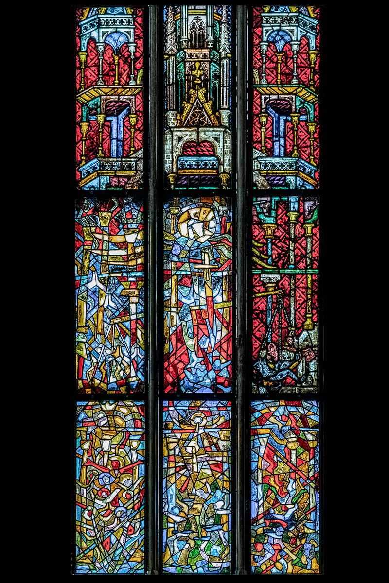 Das Michaelsfenster wurde mit zeitgenössischen Entwürfen von Peter Baldinger ergänzt.
