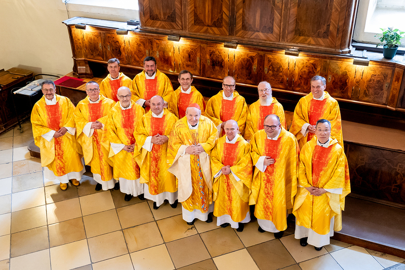 Schließlich wünschte er den anwesenden Priesterjubilaren - Lic. Dr. Harald Tripp, Mag. György Jozsef Papp, Dr. Taras Chagala, Mag. Nikola Vidovic, HSimon Dung Ngoc Nguyen CanReg, Mag. Raphael Malecki CanReg, P. Mag. Dominic Sadrawetz OSA, DI Mag. Herbert Schedl, Dr. Waldemar Jakimiuk, ThLic. Mgr. Jaroslaw Furtan und Mag. Krzysztof Jacek Pelczar und mgr. Eugen Rybansky – sowie allen Gläubigen ein tiefes und schlichtes Vertrauen auf Jesus, den guten Hirten, der seine Schafe kenne, leite und ihnen das ewige Leben schenke.