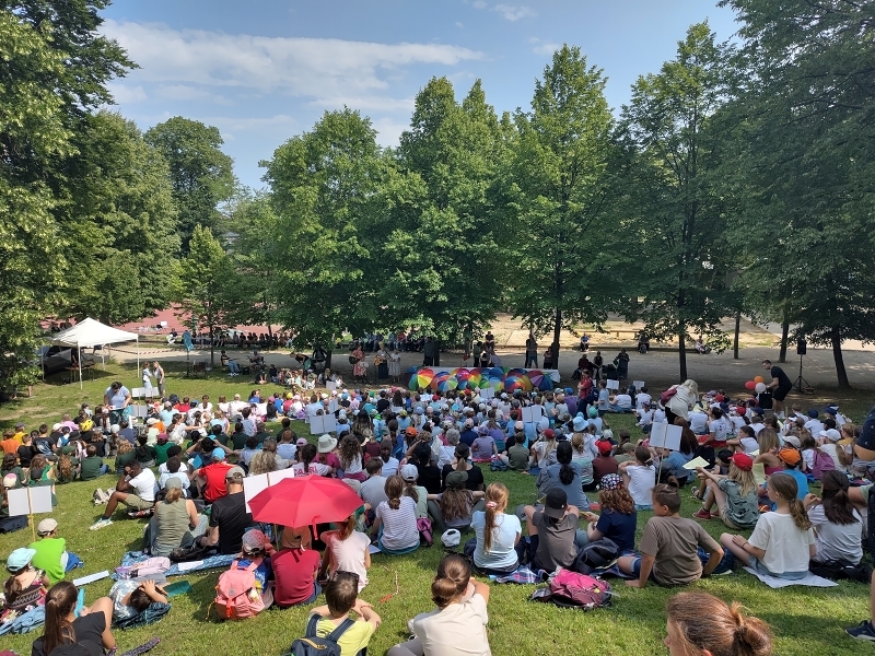 Die knapp 400 SchülerInnen hatten Wetterglück bei der Abschlussmesse der Sternwallfahrt.