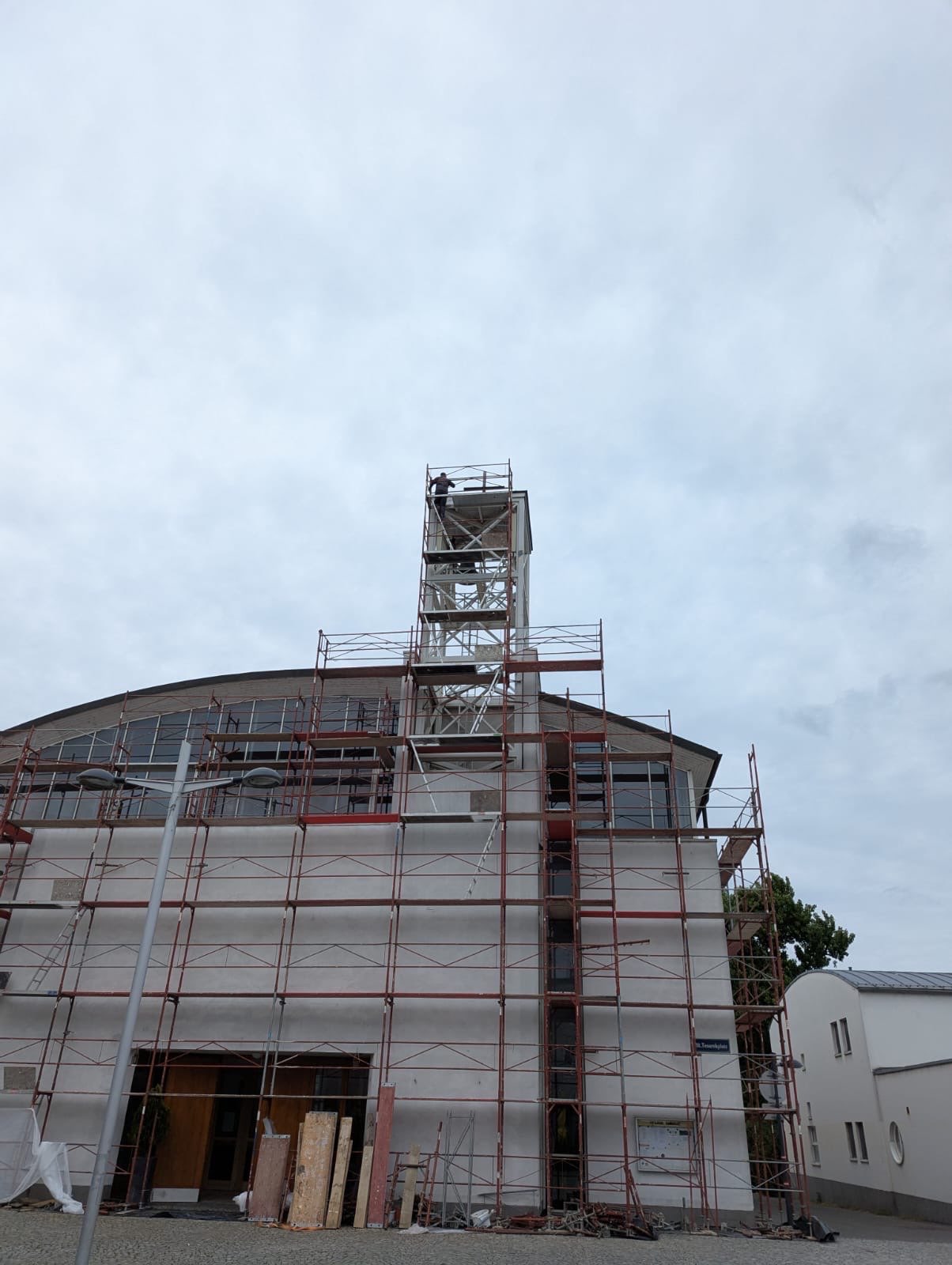 Nach einigen intensiven Monaten ist es nun auch in der Pfarre Emmaus am Wienerberg Zeit für Urlaub und Erholung. In den vergangenen Wochen war viel zu tun, denn die Kirche wurde renoviert. Dabei wurde die Fassade der Kirche saniert, die Fenster und Türen geschliffen, gespachtelt und gestrichen, die Holzkonstruktion unter dem Kirchendach ausgebessert und neu gestrichen, und die Risse rund um den Turm repariert.