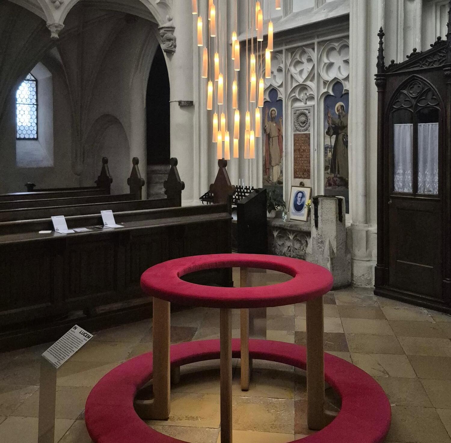 Die gotische Kirche Maria am Gestade etwas abseits der großen Touristenströme wurde während der Vienna Design Week zum Schauplatz für das Kunstprojekt "Communio". Die Designer und Künstler Matthias Leberbauer und Valentin Bauer nutzten den sakralen Raum, um traditionelle Rituale und Formen des kirchlichen Lebens in einen modernen, interaktiven Designkontext zu übersetzen.