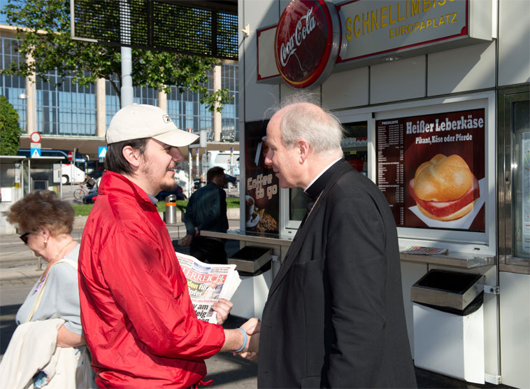 Kardinal Christoph Schönborn trifft Menschen am Wiener Westbahnhof: eine missionarische Initiative im Rahmen der Visitation des Stadtdekanats 6/7.