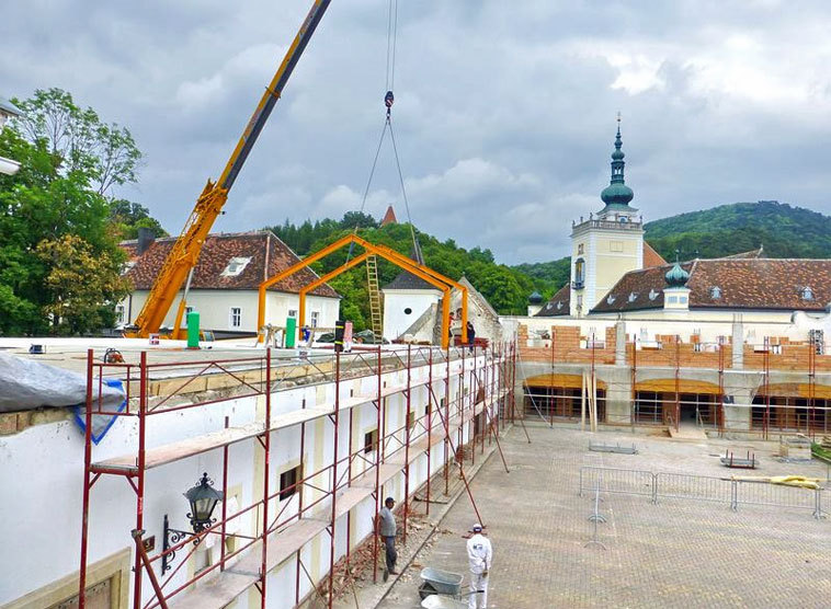 Im niederösterreichischen Zisterzienserstift Heiligenkreuz wird intensiv am Ausbau der Theologischen Hochschule gearbeitet. "Der Fortschritt wird in den nächsten Tagen besonders sichtbar sein, da im Ost- und Nordtrakt ein zusätzlicher Stock aufgebaut wird", so Pater Karl Wallner am Dienstag, 20. August 2013. Es laufe alles planmäßig - bis 2014 sollen zehn neue Seminarräume, eine Cafeteria und zusätzlich Platz für 50.000 Bücher geschaffen werden.