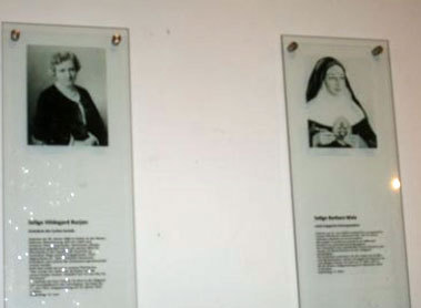 Als Vorbilder für das Leben aus der Taufe wird in Zukunft mit den im Eingangsbereich aufgehängten Gedenktafeln an zwei Frauen erinnert, die mit der Gemeinde eng verbunden waren, Hildegard Burjan und Barbara Maix.
