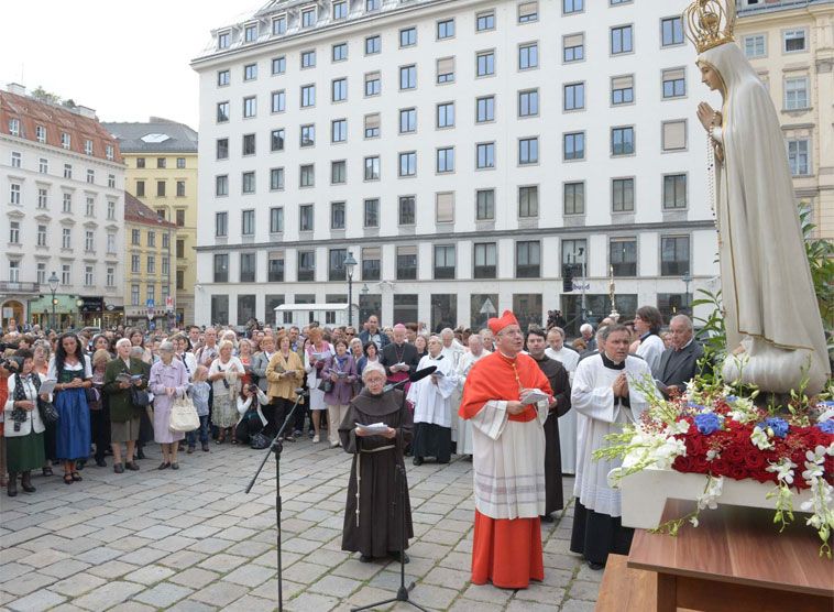 Weil es für Gott "keinen hoffnungslosen Fall" gibt und Gott "nie müde wird, zu verzeihen", ist Barmherzigkeit die "Grundbotschaft des Evangeliums". Das unterstrich Kardinal Christoph Schönborn bei der "Maria-Namen-Feier" am Sonntag, 17. September 2013, im Stephansdom. Betende sollen sich als Fürbitter für die Menschen verstehen und "im Gebet für andere eintreten, dass sie Erbarmen von Gott erfahren". Dies sei das bleibende Grundanliegen des Franziskanerpaters Petrus Pavlicek gewesen, der die Gebetsgemeinschaft für Kirche und Welt "Rosenkranz-Sühnekreuzzug" (RSK) und die seit 1947 alljährlich stattfindende "Maria-Namen-Feier" gegründet hatte.