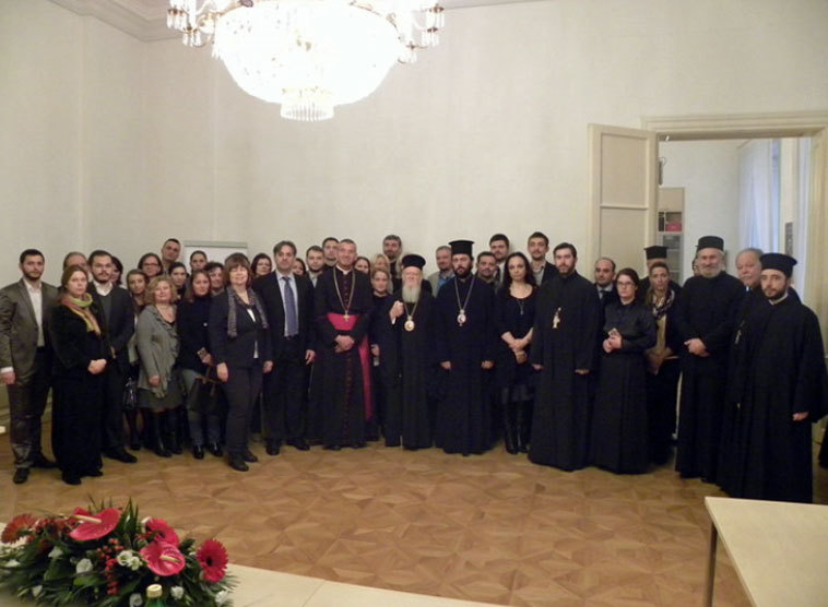 Vor den zahlreichen Vertretern der orthodoxen Kirchen bekräftigte der Patriarch die Pflicht zur Ökumene und zum Einsatz für Frieden und Gerechtigkeit in der Welt. Er äußerte zugleich seine Hoffnung, dass auch jene Teile der Orthodoxie umdenken, die sich bisher gegen den Dialog mit anderen Kirchen ausgesprochen hatten. Als Gäste nahmen an der Begegnung u.a. auch der Wiener Generalvikar Nikolaus Krasa und die katholischen Schulamtleiterin Christine Mann teil. Patriarch Bartholomaios und der orthodoxe Schulamtsleiter Branislav Djukaric dankten der Erzdiözese Wien für die gute Zusammenarbeit. Das orthodoxe Schulamt ist in Räumlichkeiten des katholischen Schulamtes untergebracht.
