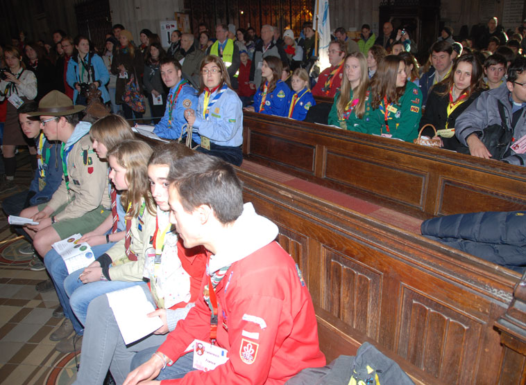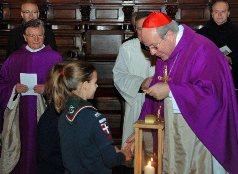 Ökumenische Lichterfeier mit Pfadfindern aus 20 Ländern in Wiener Votivkirche und Übergabe an Kardinal Schönborn im Stephansdom.
