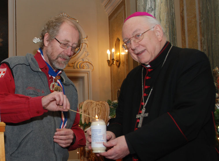 Am Freitag, 20. Dezember 2013, bekam auch Kardinal Christoph Schönborn das Friedenslicht im Wiener Stephansdom überreicht.
