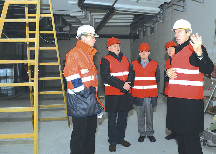 Baudirektor Harald Gnilsen erläutert auf der Baustelle die Pläne für die "Bahnhof-Kirche".