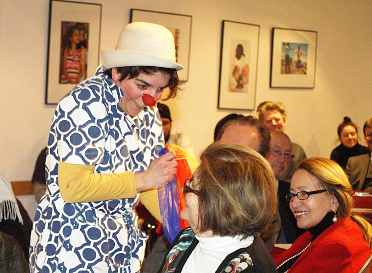 Die Clownin Gwendolin Grübel alias Constanze Moritz beim Salonabend "Humor in den Religionen" im Afro-Asiatischen-Institut.
