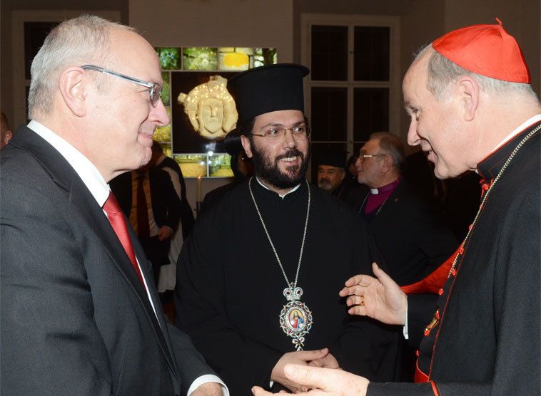 Papstrücktritt vor einem Jahr: "Ist das überhaupt möglich? Verträgt sich das mit dem Anspruch des Papstamtes?" Das fragte sich der evangelische Bischof Michael Bünker. Eine "mutige Entscheidung", dachte damals Metropolit Arsenios. (Im Bild mit Kardinal Schönborn beim traditionellen Ökumenischen Empfang)