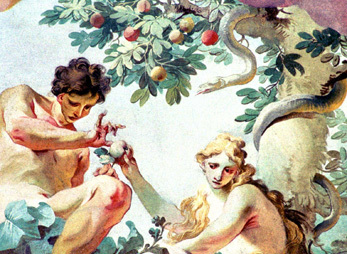Zwei große Versuchungsgeschichten erzählt die Bibel. Die erste steht auf den ersten Seiten der Bibel: Adam und Eva werden von der Schlange versucht, vom verbotenen Baum zu essen. Sie erliegen der trügerischen Versuchung und essen "den Apfel" (die Bibel sagt nicht genau um welche Art von Frucht es sich handelt). Beide verlieren das Paradies.