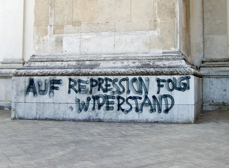 Die Täter hätten offenbar mehrere Farbbeutel auf Mauerwerk und verschiedene Statuen geworfen, sagte Polizeisprecherin Barbara Riehs gegenüber "Radio Wien". Auch der Schriftzug "Auf Repression folgt Widerstand" sowie diverse Symbole wurden an das Mauerwerk geschmiert. Es sei "enormer Sachschaden" an den Sandsteinstrukturen entstanden, hieß es.