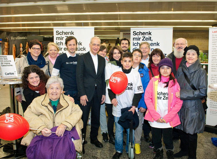 Unter dem Motto "Schenk mir Zeit, ich schenk Dir Erinnerungen!" macht die Caritas die Vielfalt und Buntheit sozialer Tätigkeiten sichtbar. Am Westbahnhof, am Karlsplatz und beim Schottentor erzählen freiwillige MitarbeiterInnen sowie Menschen aus der Gruft, aus den Seniorenhäusern, aus dem Hospiz oder aus den Lerncafés über ihre Erlebnisse - und laden Passanten ein, ihre Erfahrungen mit ihnen zu teilen. Es geht auch darum, aufzuzeigen, was Menschen, die Zeit schenken "zurückbekommen": Schenk mir Zeit, ich schenk Dir Erinnerungen, ein Stück Lebensweg, meinen Sprachschatz oder ein Abenteuer.