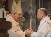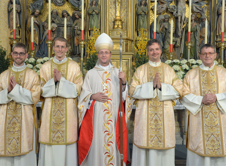 Weihbischof Stephan Turnovszky weihte am Sonntag, 18. Mai 2014, in der Wiener Augustinerkirche durch Handauflegung und Gebet drei Seminaristen aus dem Wiener Priesterseminar in der Strudelhofgasse und einen Seminaristen aus dem "Diözesanen Missionskolleg Redemptoris Mater" zu Diakonen.