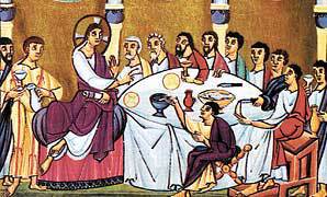 Was also in jeder Eucharistiefeier gewandelt wird, ist eine sozial zerklüftete Gruppe hinein in eine verschworene Gemeinschaft: Es gibt dann nicht mehr Juden und Griechen, Sklaven und Freie, Männer und Frauen, sondern alle sind eins geworden in dem einen Christus (Gal 3,28) und sind mit diesem zusammen auch eine Art ”erweiterter Christus“. Ihr Markenzeichen ist die liebende Hingabe. Und genau das ist dann ”Kirche“ im strengen Sinn dieses biblischen Wortes. Die mittelalterliche Bildkunst stellte daher die Kirche dar mit den beiden Szenen Fußwaschung und Abendmahl.