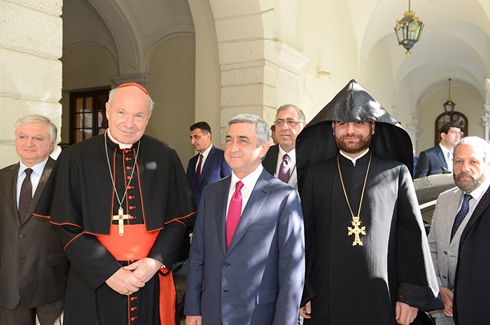 Kardinal Schönborn erinnerte bei der Begegnung mit Präsident Sargsyan an die lang zurückreichende Tradition der armenisch-apostolischen Gemeinde in Wien, aber auch an seine eigenen Begegnungen mit den armenischen Gemeinden bei seinem Iran-Besuch im Jahr 2011. Er hoffe sehr, der Einladung des armenisch-apostolischen Katholikos nach Etschmiadzin in absehbarer Zeit nachkommen zu können. Der Wiener Erzbischof äußerte seine Sorge über die Situation der Armenier in Syrien, die vom Bürgerkrieg schwer betroffen seien. Generell sei festzustellen, dass die Präsenz der Christen im Nahen Osten von größter Bedeutung für die dortige gesellschaftliche Entwicklung sei. Es sei überaus bedauerlich, dass die Christen im Nahen Osten so oft allein gelassen würden.